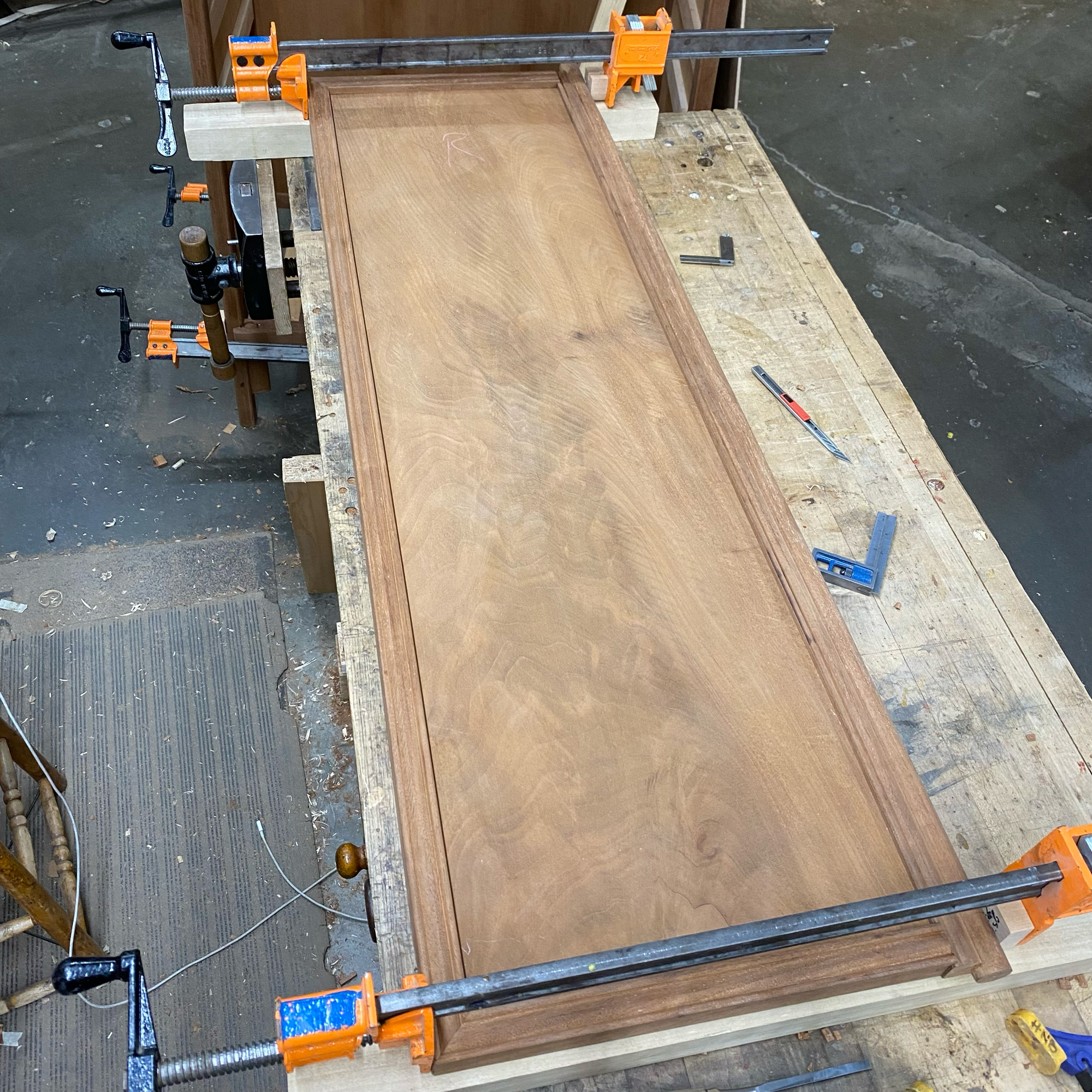 Door panels were assembled and glued using traditional hide glue.